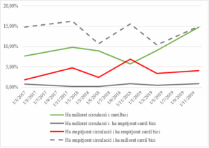 Gràfica 3: Evolució de la percepció de millora i empitjorament del carril bici i la circulació.